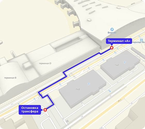 * минимальное время в пути трансфера к точке высадки напротив колонн А20-А21 аэропорта Внуково без учета времени ожидания отправления. Трансфер не является индивидульным.